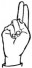 На ћирилици написано НАДЈА МЕЧАНИН састоји се из 12 слова [?]. Исписано ћириличном једноручном азбуком за глувонеме: